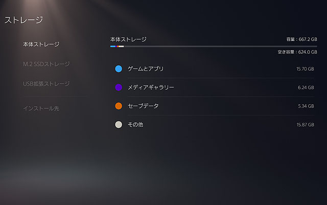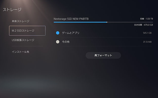 本体ストレージに入っていたゲームソフトをすべてM.2 SSDストレージに移したところがこちら。それでもまだ479GB空いているし、ものすごい余裕ができました。