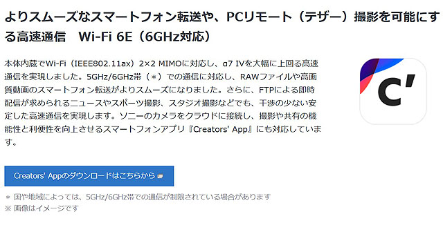 そして、ソニー”α”でははじめて、6GHzが使える「Wi-Fi 6E」を2✕2のMIMOアンテナで採用します。従来のWi-Fi5と比較しても帯域幅が増えるので、対応するルーターを使えば高速転送が可能になります。