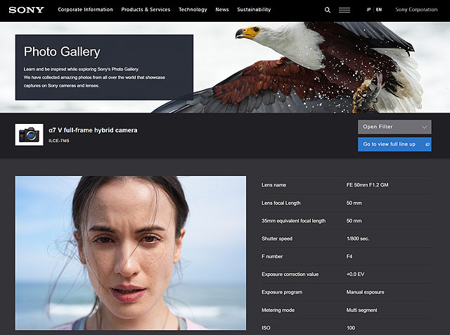 α7 Vの作例が日本の製品ページには掲載されていませんが、ソニーのグローバル向けのPhoto Galleryでご覧になることができます。
