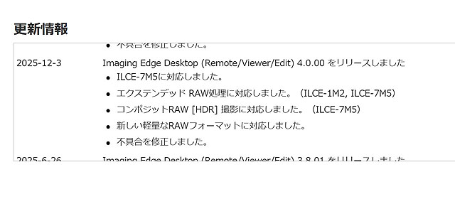 Imaging Edge Desktopはソニーが提供するソニー”α”用のRAW現像などのソフトです。VIewerやリモートコントロール機能なども備えたソフトウェアなんですが、これがアップデートしてエクステンデッドRAW現像と、α7 Vで新搭載されたコンポジットRAW[HDR]の現像に対応しました。