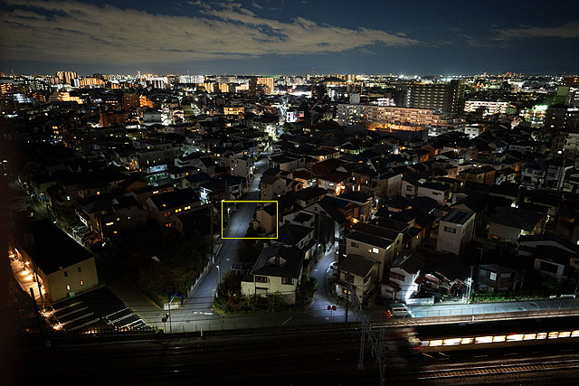 まずはノイズリダクションからテスト。ISO12800で撮ってみました。黄色枠のところを等倍拡大してみたものがこちらです。