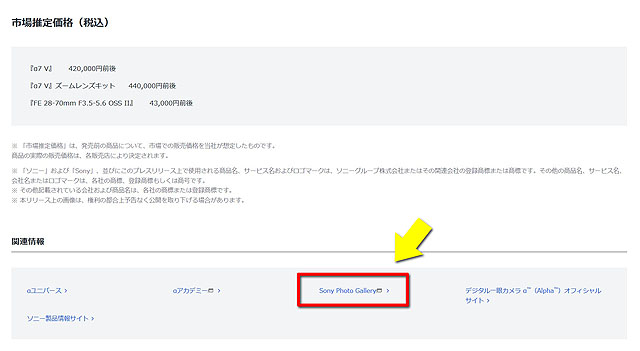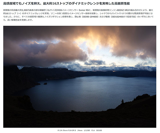 どうやら今回から商品ページ掲載ではなく、グローバル向けのソニーのPhoto Galleryで紹介するスタイルになったみたいです。