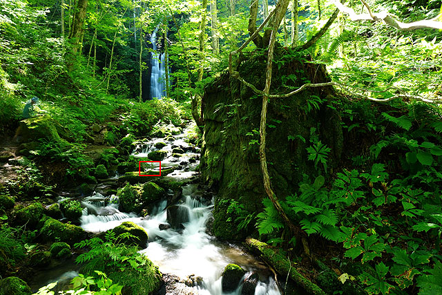 夏に撮影してきた湿原の写真なんですが、真ん中の赤枠のところを拡大してみます。