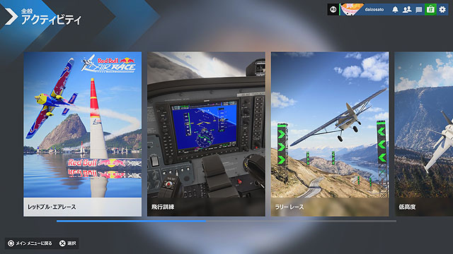 そして、気を引くのが「レッドブル・エアレース」です。練習しなくても操縦桿の操作だけでなんとかなるといえばなんとかなるので、いきなりチャレンジしてみるのも可能です。