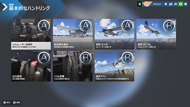 最初からですがトリム管理というスポードと高度を一定に保つ練習が私には激ムズで、なかなかAが取れませんでした。でも、これは基本なので、もうちょっと練習しないとなー。