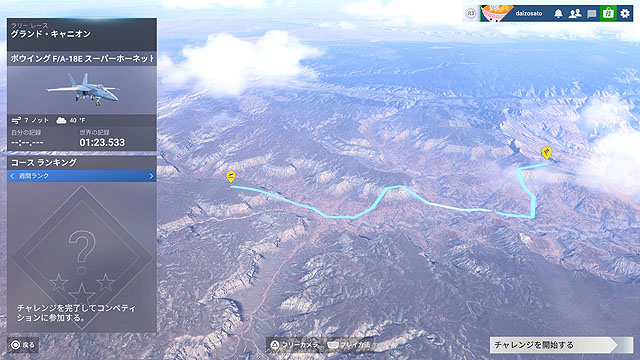 これは18個のゲートを戦闘機で通過していき、そのタイムを競うというものになっています。世界中のユーザーさんでタイムを競い合うことを行います。