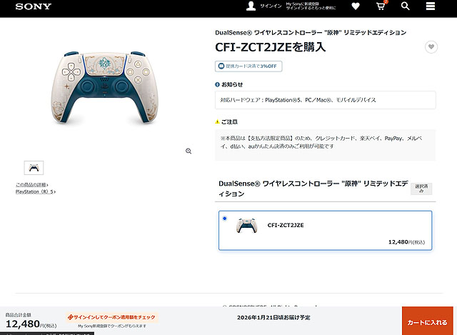 ☆PlayStation.Blog「『DualSense ワイヤレスコントローラー “原神” リミテッドエディション』が2026年1月21日(水)発売!