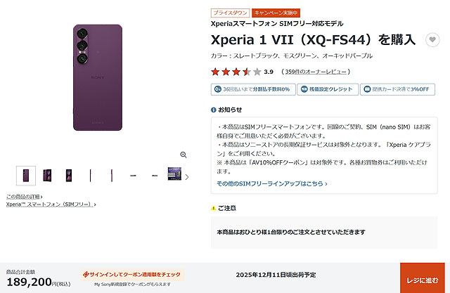 【品薄注意】Xperia 1 VII/10 VII の納期がさらに遅延へ。年内発送が危険に!