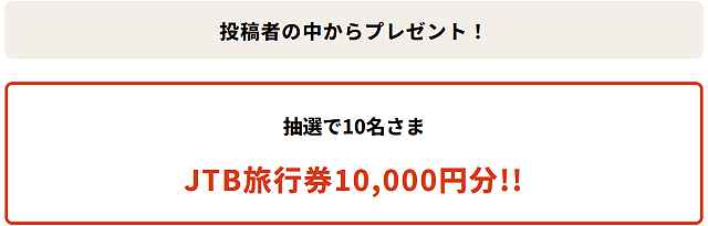 そして投稿者の中から抽選で10名さまにJTB旅行券10,000円分のプレゼントも。