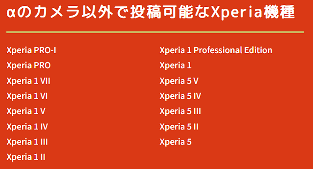 作品投稿はミラーレス一眼”α”だけでなくXperiaの上記機種で撮影した作品も可となっています。