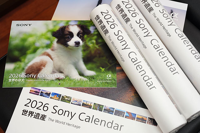 年末恒例のソニーカレンダープレゼントも引き続き開催しています。卓上カレンダーのプレゼントは終了しましたが、「世界の仔犬」カレンダーがまだ数部あります。壁掛けの世界遺産カレンダーはまだまだあります。