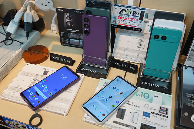 現在、年内お届けがギリギリになっているプライスダウンされたばかりの「Xperia 1 VII」ですが、こちらも動作する実機を展示しています。今月になってからご相談件数が増えています。