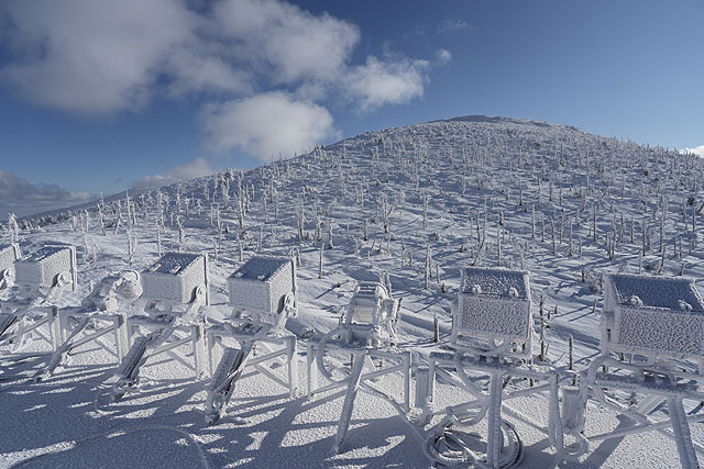 さて、蔵王の山頂付近ですが、期待していたスノーモンスターの一群はまだ出来ていなくて、スノーモンスターは育成中という感じでした。