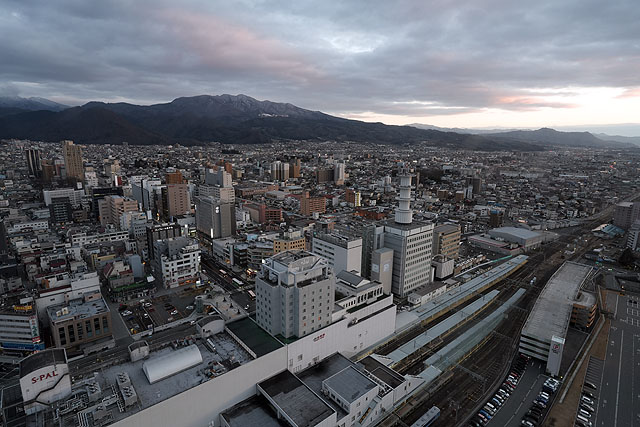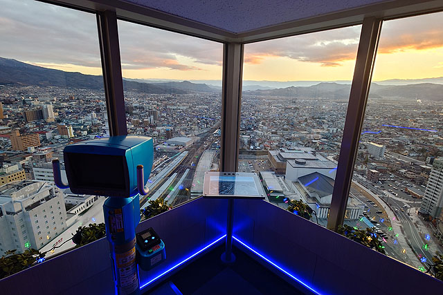 足下には山形駅が見えるのと、向こうには蔵王山が一望できます。なるほど、これは良いところですね。今回、旅してきたところが一望できます。