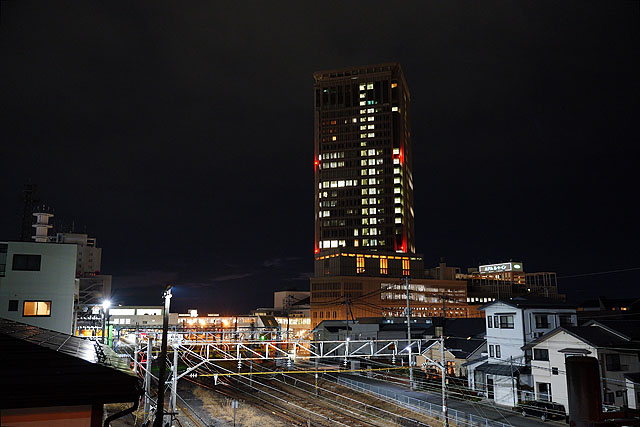 ということで、下り新幹線が発車したあとに撮影したショットがこちらです。やったー、綺麗な夕景夜景が撮れました。