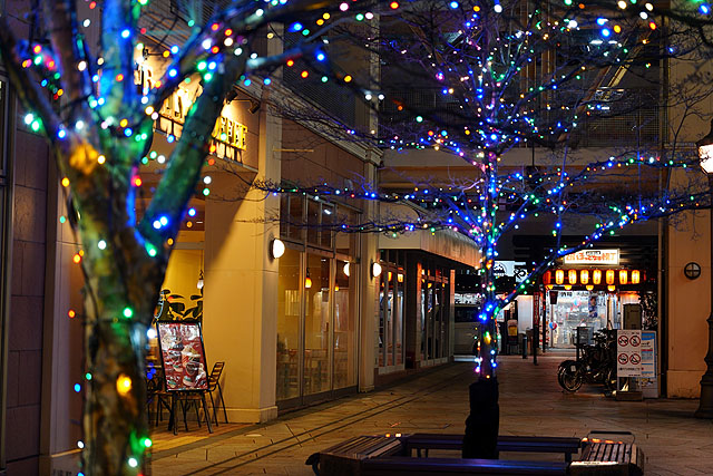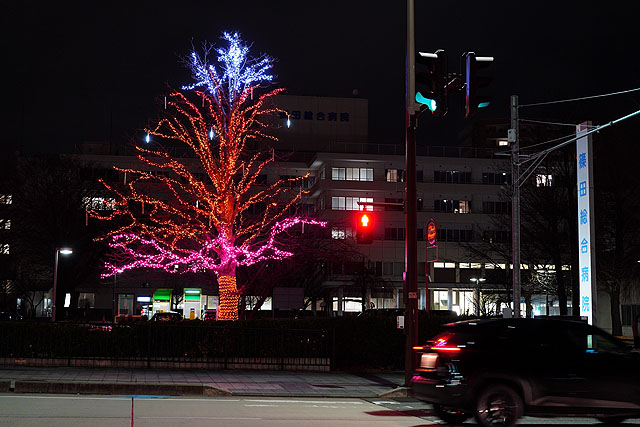 山形市内にあるというイルミネーションポイントを探して、コンポジットRAWのHDR撮影設定をしていきます。