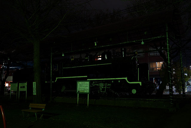 ググりながら歩いて来たんですが、イルミネーションで飾られているというSLのある公園まで来ましたが、どうやら平日はライトアップしないみたいですね。