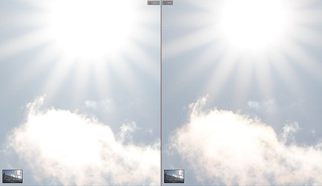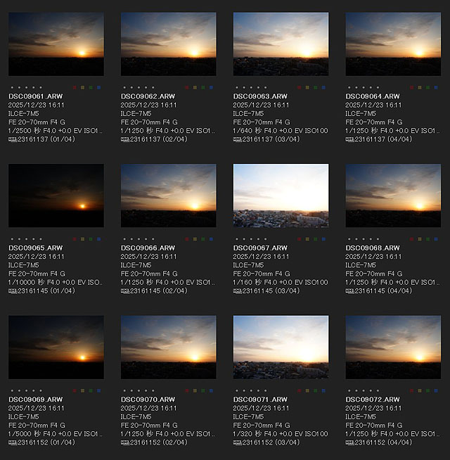 1枚撮影の画像と比べて見ると太陽の大きさが違うのと、雲が白飛びせずに階調が残っているのがわかります。
