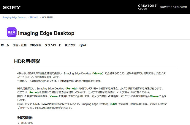 ☆ Imaging Edge Desktop > 使いかた > HDR用撮影