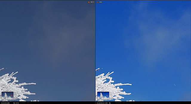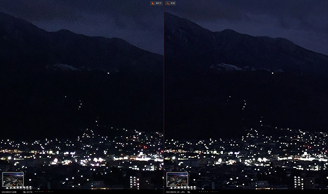 こちらの蔵王山の辺りもノイズ低減があるのと、暗部の描写がすごく良くなっています。情報量が増えた感じがあり、さすが16枚合成!