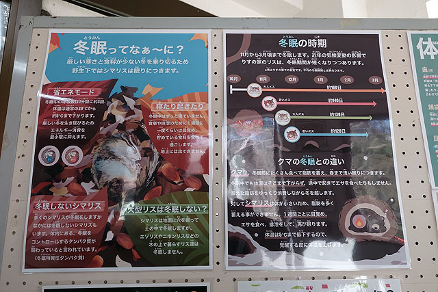 一般的なシマリスの冬眠ではなく、ここ「りすの家」のシマリス達の冬眠時期について説明があったり、クマの冬眠との違いなども解説されています。これは見どころです。