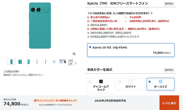 ソニーストアで販売中のSIMフリーモデル「Xperia 1 VII」と「Xperia 10 VII」の出荷目安が一部モデルで2月の表示になりました。