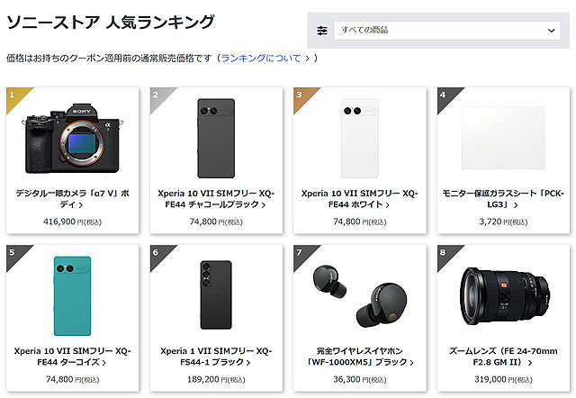 先週発見した「ソニーストア 人気ランキング」が気になって毎日チェックしているんですが、上位に毎日「Xperia 10 VII」が3カラーモデルとも入っていて、そんなに売れてるの!?(α7 Vもすごいですけど)と思っていたところ、今朝になって確認したところ「Xperia 10 VII」は全色の納期が2月3日になっていることが判明。