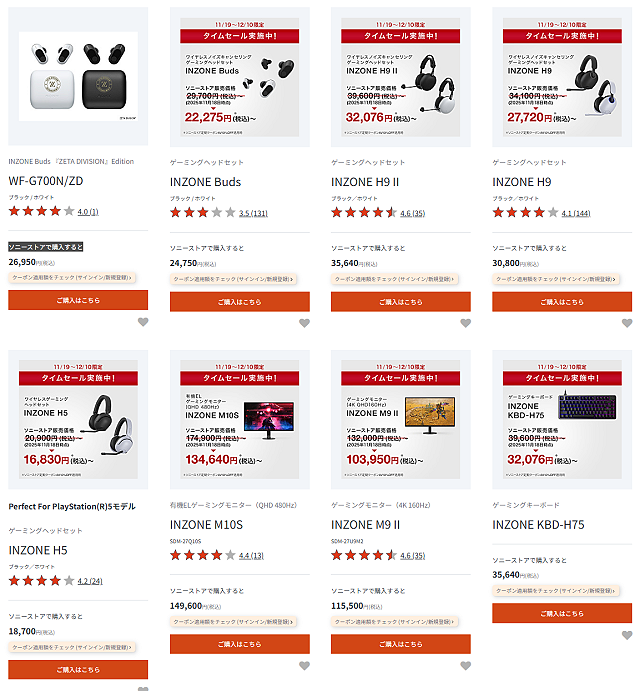 INZONE製品8モデルが12月10日までの期間限定で一斉にタイムセールになっています。