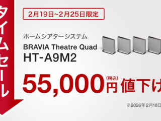 ホームシアターシステム「BRAVIA Theatre Quad(HT-A9M2)」とサウンドバー「BRAVIA Theatre Bar 9(HT-A9000)」のタイムセールが2月19日(木)10:00 ~ 2月25日 … 続きを読む 【期間限定】BRAVIA Theatre Quad(HT-A9M2)/BRAVIA Theatre Bar 9(HT-A9000)が過去最大級値下げ! 最大55,000円オフの衝撃タイムセール