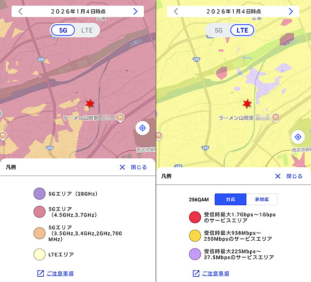 ドコモのスピード測定アプリには通信エリアの表示をすることもできます。確認してみると、そんなに電波状況が悪いところでもないんですけどね。