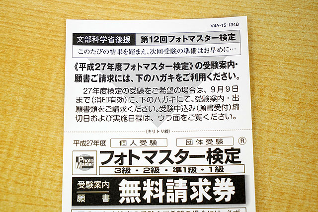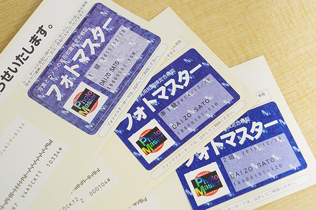 写真を撮るのに「資格」は必要ないのですが、持っている知識などのバロメーター的なものが唯一あって、それが「フォトマスター検定」という検定試験です。