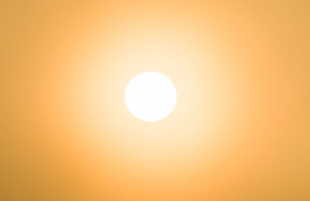 太陽という極端に明るい被写体を含みながら、周囲の霧や水面の階調がしっかり残っています。