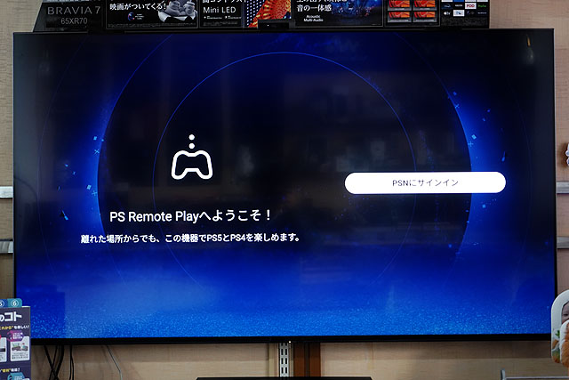 なお、こちらは先に機能を実装している店頭展示の「BRAVIA 7」です。アップデート後、特にインストール作業などもなく、入力切替にすると「PS Remote Play」のアイコンが表示されて、機能が使えるようになっています。