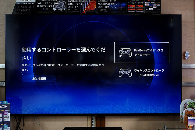 ワイヤレスコントローラーとBRAVIAの接続もここで行います。PS5用、PS4用のコントローラーを使うことができます。接続方法も画面に案内されますので、特に何も見なくても設定ができます。