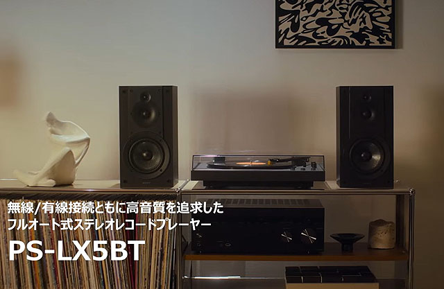 さて、こちらは「PS-LX3BT」のプロモーションムービーの様子です。こちらはよりシンプルに、レコードプレーヤー本体からBluetoothを使った無線伝送で音楽を楽しむスタイルになっています。