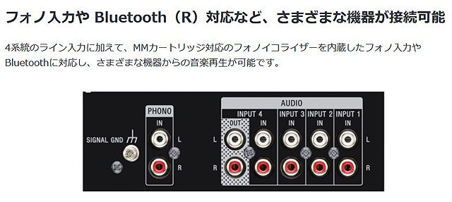 「STR-DH190」には「フォノ入力」端子が用意されていて、レコードプレーヤーからのPHONO出力に対応するアンプとなっています。