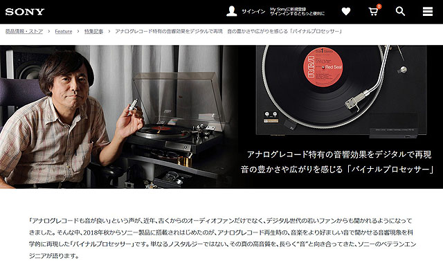 ★ソニー特集記事『アナログレコード特有の音響効果をデジタルで再現 音の豊かさや広がりを感じる「バイナルプロセッサー」』