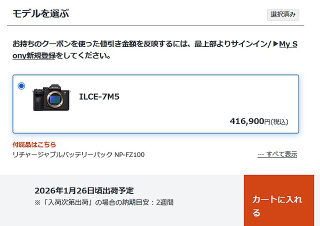 【納期情報】「α7 V」の納期が一気に短縮!ソニーストアで「3日待ち」表示に変更