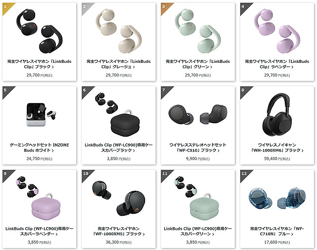 『LinkBuds Clip』がソニーストア人気ランキングを席巻!予約開始後の動きとカラー別人気をチェック