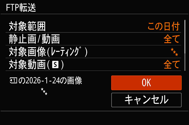 あとは再生時にカスタムボタン3にレーティング設定をしておいて、再生画面で転送したい画像が表示されたらカスタムボタンを押すことで、あとは自動転送してくれます。