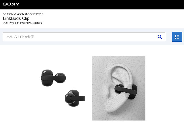 2月6日発売予定のソニー初のイヤーカフ型ワイヤレスヘッドホン「LinkBuds Clip」のヘルプガイドが公開になっていました。Google検索で「LinkBuds Clip ヘルプガイド」と検索をすると表示されます。