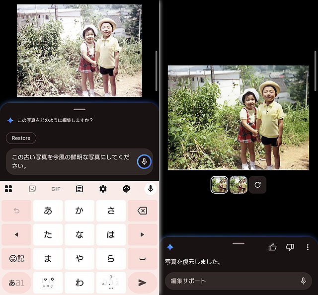 こうした古い写真を鮮明にしてもらう、とかは得意みたいで、かなりいい感じにしてくれました。これはもう、昔の写真を取り込みまくって補正しまくってもらうしかないですね。