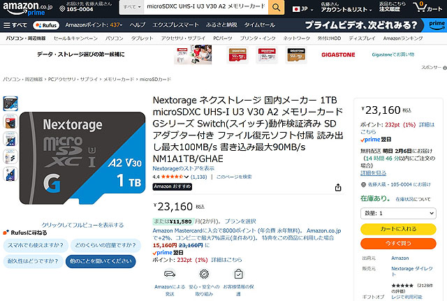 ソニーでは現在はマイクロSD製品の販売を終了していて、ソニーストアで販売しているのは、現在はNextorage製の製品になりますが、こちらのマイクロSDカードが先月あたりからオーダーがかなり増えています。