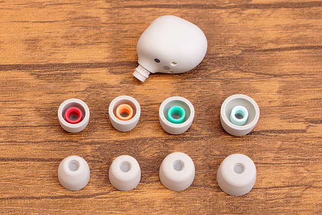 本体に装着されているMサイズ以外に、SSサイズ、Sサイズ、Lサイズが付属し4種類のイヤーピースから自分のサイズに合わせて使うことができます。