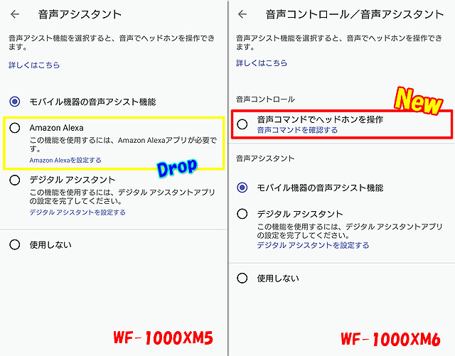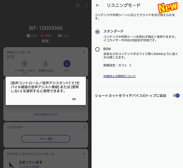 音声コントロール機能でデジタルアシスタントが選択できない、イコライザーが使えない、DSEE Extremが使えないなど、排他機能がいくつかあるのが注意点です。