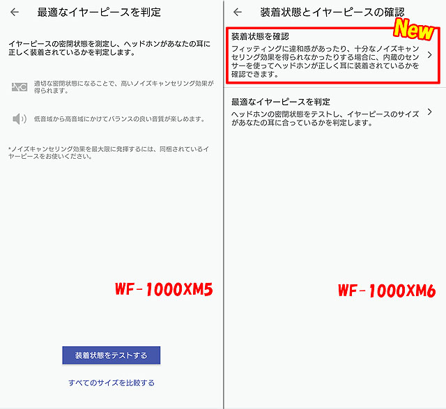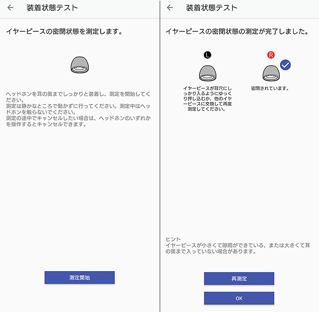 「最適なイヤーピースを判定」→「装着状態とイヤーピースの確認」というのも微妙にパワーアップしました。