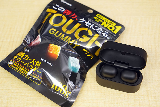 「体内ノイズ」が小さくなるのを実感できるというグミを食べながらの比較試聴を私も先ほど試してみましたが、なるほど、タフグミの場合、WF-1000XM5だと、かなりゴリゴリした音が響くんですけど、新型WF-1000XM6はかなり軽減されますよ。