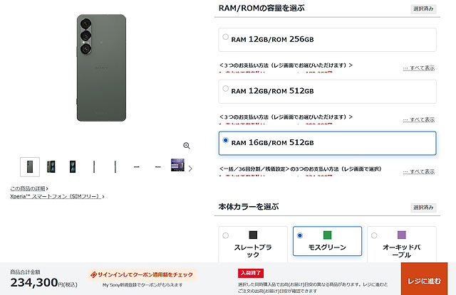 ソニーストアで販売中のSIMフリースマートフォン「Xperia」の最新納期情報です。 RAM 16GB/ROM 512GBのモスグリーンが「入荷終了」ステータスになりました。また、一部モデルは3月末の納期になってきていま […]