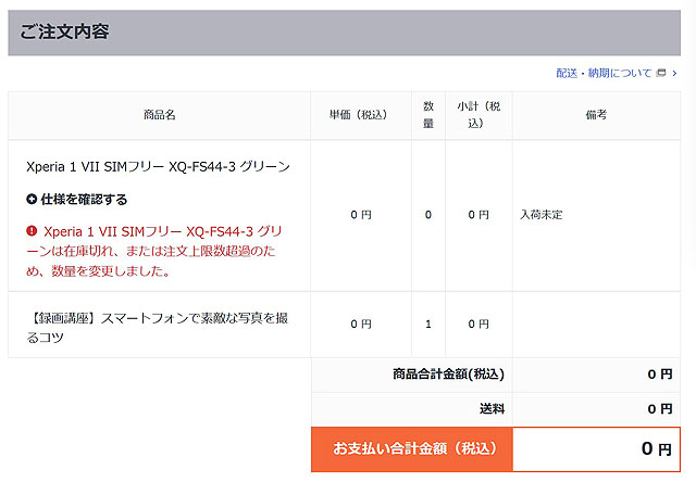 ■ Xperia 1 VII、現在の納期状況