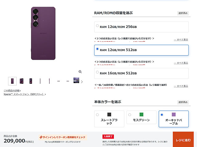 先週末にはRAM 16GB/ROM 512GBのモスグリーンに「入荷終了」ステータスがついていただけなのですが、12GB/512GBモデルで2機種が「入荷終了」になりました。また、16GB/512GBのオーキッドパープルも次回入荷待ちになる「入荷次第出荷」ステータスになったため、現在、当日出荷もしくは翌日出荷で購入できるモデルはスレートブラックのみとなっています。